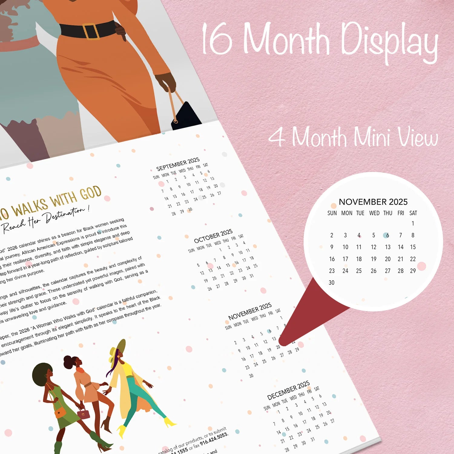Step into 2026 with divine purpose and spiritual inspiration through the "A Woman Who Walks With God" wall calendar, featuring the stunning contemporary artwork of celebrated Congolese-French artist Nicholle Kobi. This premium 16-month calendar transforms everyday planning into a sacred practice, beautifully illustrating the faith journey of Black women through vibrant, culturally rich artwork that speaks to the soul.
