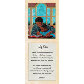 An unframed art print featuring artwork by Lester Kern and poetry by Shahidah. This literary art print depicts an African American woman reading the Holy Bible with her son as Jesus watches from the Heavens.. The poetry on the image spokes on the love a mother has for her son. Makes a great gift for your son on any occasion where you want to make sure he feels special. It reads as noted below: