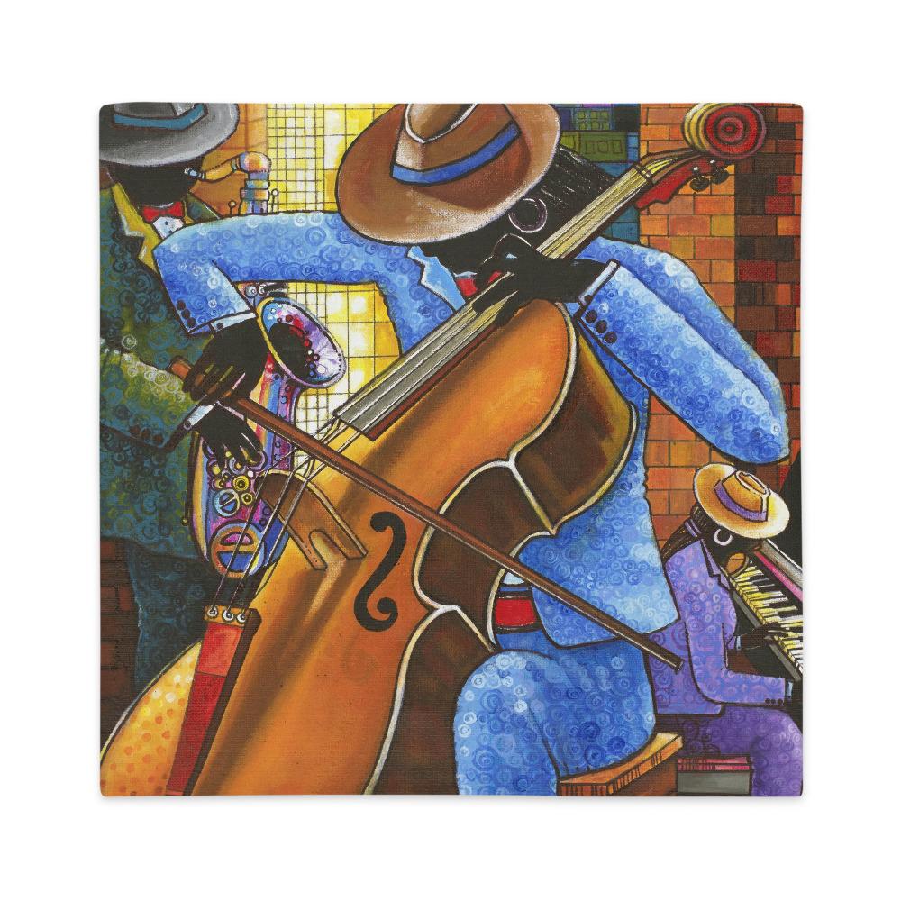 This premium pillowcase features the artwork of Nigerian born artist D.D. Ike. The work of art featured is titled "Mood Music" and depicts a three-piece female jazz band performing to the delight of the audience.