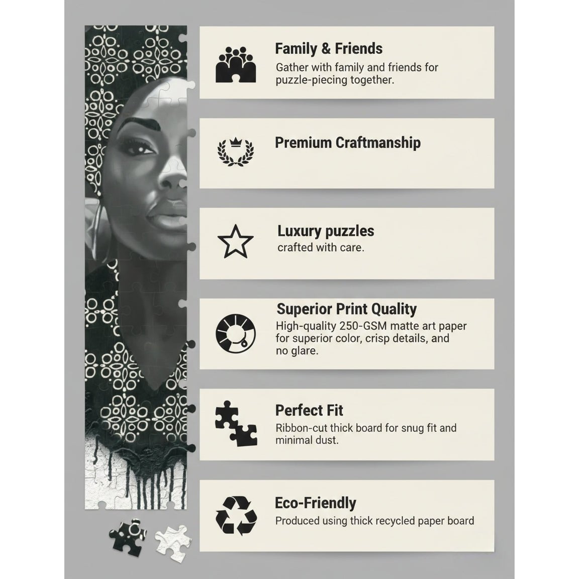 Whether you're building it as a meditative solo activity or gathering loved ones around the table, this puzzle transforms an evening into a cultural experience centered on unity, resilience, and the boundless power of Black womanhood.