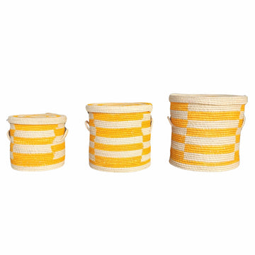 Our baskets are made in sets of three but sold individually to suit your specific needs.. The large basket measures 16 inches in Height (without hood/lid/cover) and 17 inches in Height (with hood/lid/cover) and has a diameter of 16 inches. The medium basket measures 14 inches in Height (without hood/lid/cover) and 15 inches in Height (with hood/lid/cover) and has a diameter of 14 inches. The small basket measures 12 inches in Height (without hood/lid/cover) and 13 inches in Height (with hood/lid/cover) and has a diameter of 12 inches.