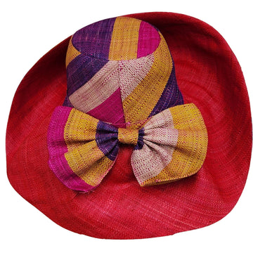 This beautiful, lightweight raffia hat features a 7-inch brim that we weave by hand in Madagascar. Its shape-able brim allows the owner to wear the hat in many different styles. This adjustable hat is an eco-friendly product crafted from natural Raffia and other renewable and sustainable raw materials utilizing various energy-saving techniques. It contains a comfortable cotton lining with an adjustable drawstring in its interior. All the colors on this hat were achieved using a long-lasting dye made from vegetables.