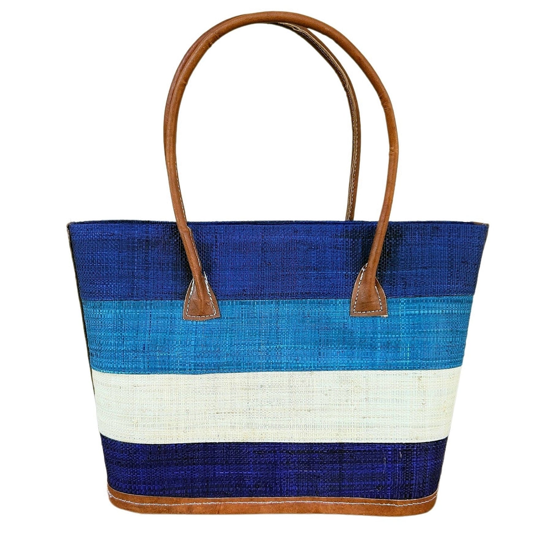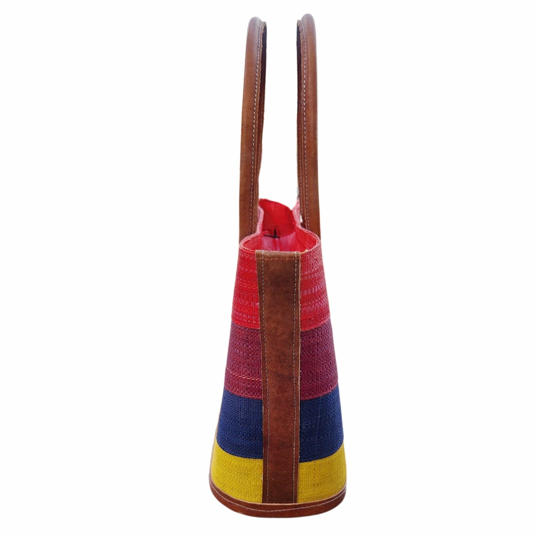 Experience the allure of handcrafted fashion with our set of 'Titi' handbags, crafted as sets in Madagascar but sold individually. Each bag is meticulously hand-woven from raffia, a material renowned for its durable and flexible qualities, setting it apart from traditional straw. The vibrant stripes running across the bags, featuring four distinct colors, create a unique and appealing design that's sure to turn heads.