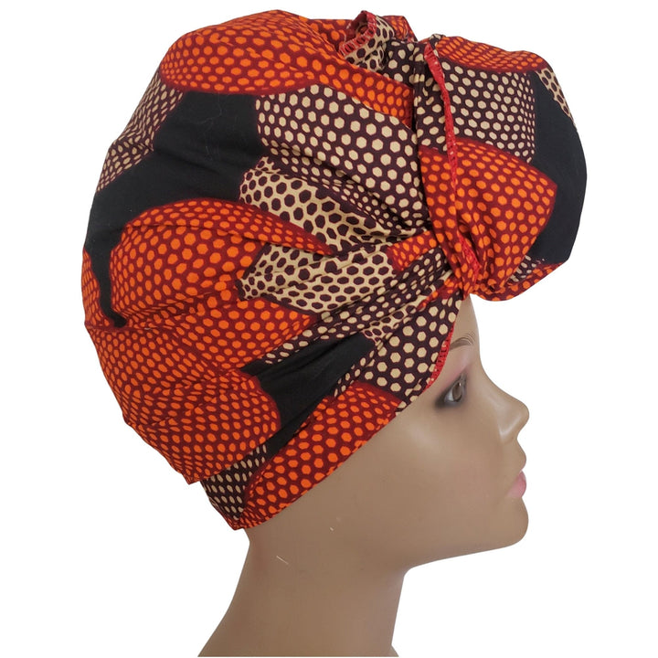 An authentic multi-colored African fabric headwrap crafted in Kenya by the local artisans we partner with. Made from either Kanga, Kitenge or Kikoi fabrics. These fabrics are high quality 100% cotton wax print fabrics that are vibrant and colorful on both sides.