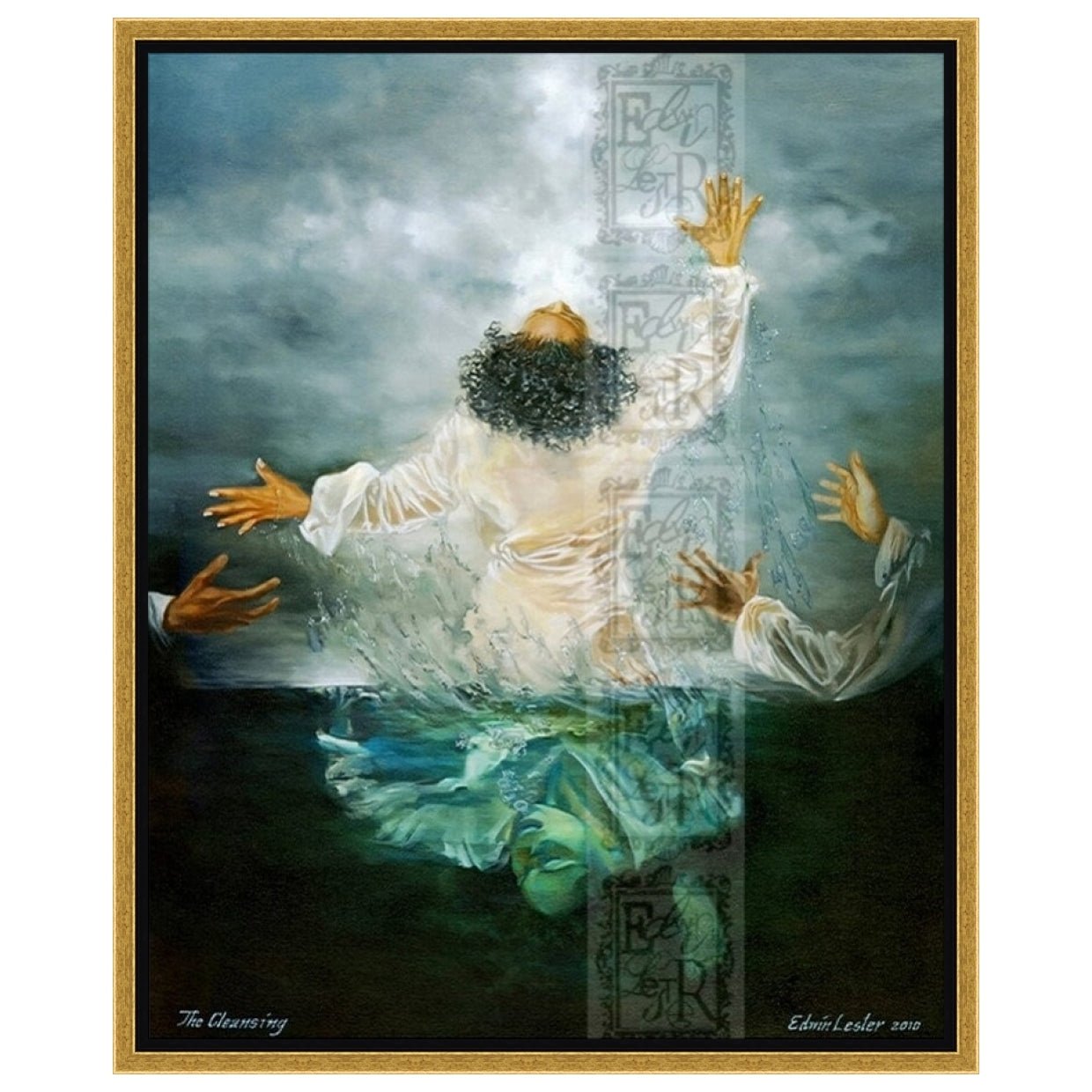 The Cleansing by Edwin Lester captures the transformative moment of baptism—a powerful spiritual symbol of rebirth and renewal.